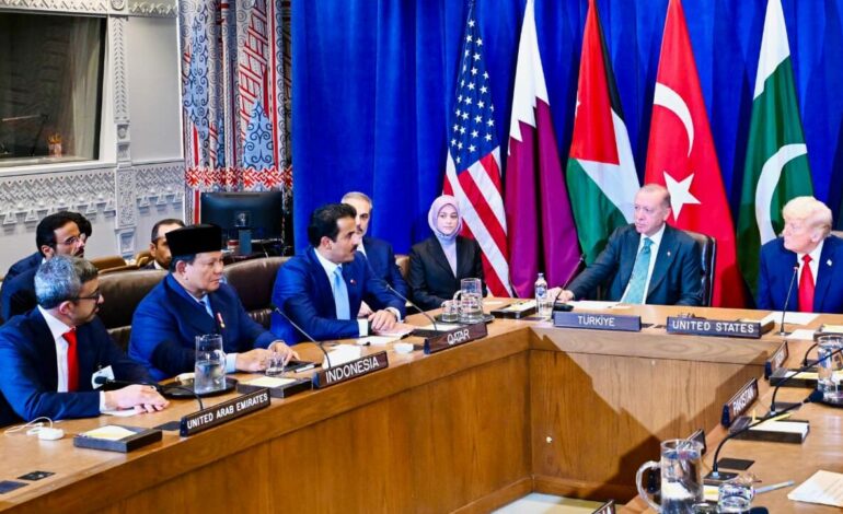 NEW YORK – Presiden Republik Indonesia Prabowo Subianto bersama sejumlah pemimpin negara Arab mendesak Presiden Amerika Serikat Donald Trump untuk memimpin upaya penyelesaian konflik di Gaza. Permintaan ini disampaikan dalam pertemuan multilateral yang digelar di sela-sela Sidang Majelis Umum Perserikatan Bangsa-Bangsa (PBB) di New York, Amerika Serikat, pada Selasa (23/9/2025).