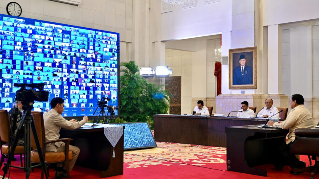 JAKARTA – Presiden Prabowo Subianto memberikan arahan kepada Sarjana Penggerak Pembangunan Indonesia (SPPI) di berbagai daerah melalui video conference dari Istana Kepresidenan, Selasa (18/2).