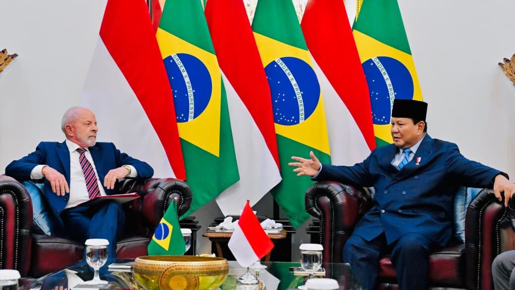 JAKARTA – Presiden Republik Indonesia Prabowo Subianto berbagi momen penuh keakraban dengan Presiden Brasil Luiz